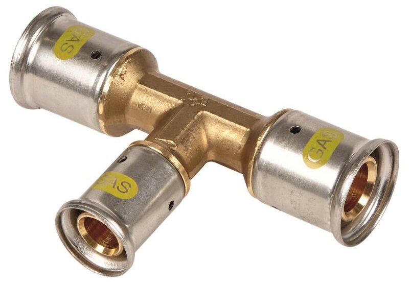 Type: tee, connection type: press, pipe diameter: 26 mm, 32 mm, material: brass, reducer, with seal
