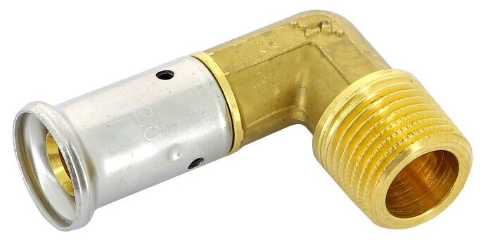Type: elbow 90°, connection type: press-thread, connection: male, thread diameter: ⅜", pipe diameter: 16 mm, pipe thickness: 2 mm, material: brass, with seal, combined