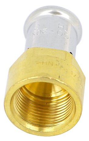 Type: coupling, connection type: press-thread, connection: female, thread diameter: ½, pipe diameter: 20 mm, pipe thickness: 2 mm, material: brass, with seal, combined