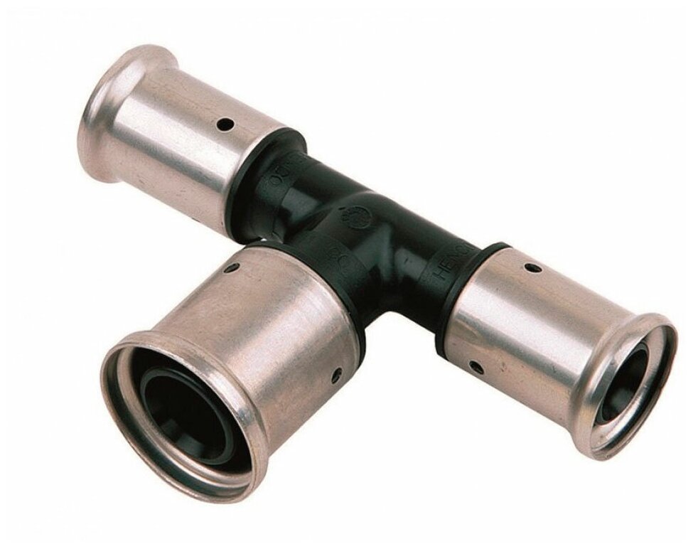 Description: Type: tee, connection type: press, connection: internal, press fitting profile: B, TH, pipe diameter: 20 mm, 26 mm, pipe thickness: 2 mm, 3 mm, material: black cast iron, transitional, with seal
