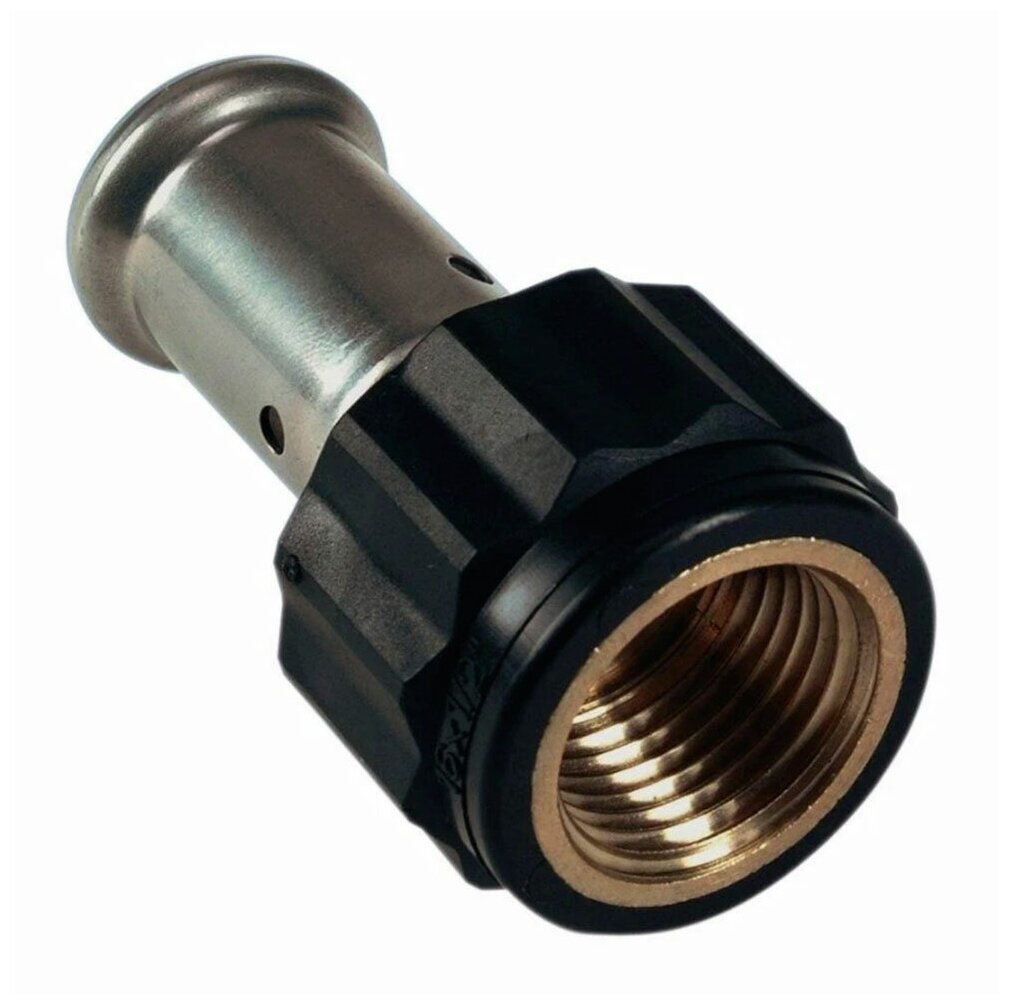 Type: coupling, connection type: press-thread, connection: female, press fitting profile: B, TH, thread diameter: ½", pipe diameter: 16 mm, pipe thickness: 2 mm, material: black cast iron, with seal, combined