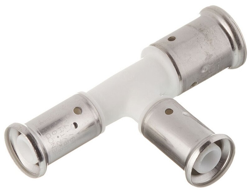 Henco reducer tee reduced on both sides, PVDF press white, 26x26x16
