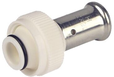 Type: coupling, connection type: press-thread, connection: internal, thread diameter: ¾", pipe diameter: 16 mm, material: black cast iron, with union nut, with seal, combined