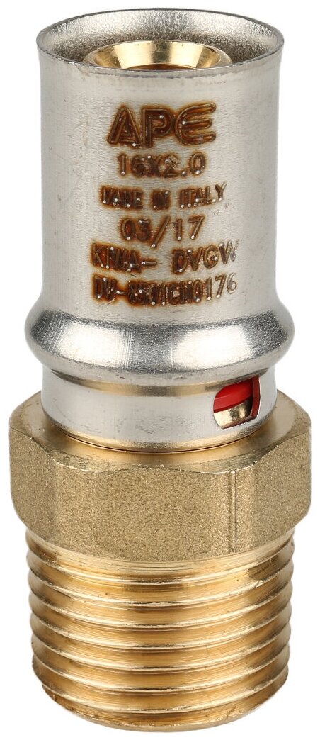 Type: coupling, connection type: press-thread, connection: male, thread diameter: ¾, pipe diameter: 16 mm, material: brass, combined