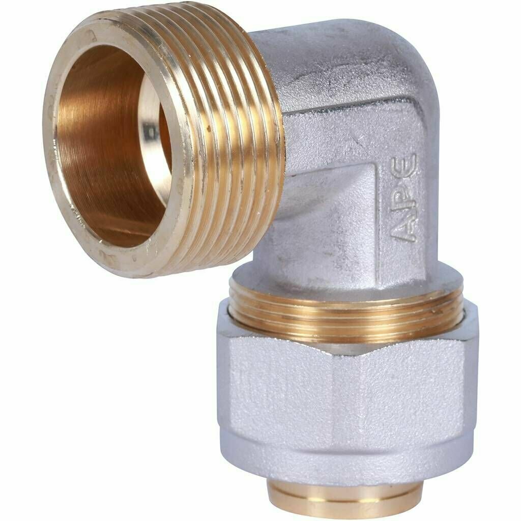 Type: elbow 90°, connection type: crimp - thread, connection: male, thread diameter: 1 ¼", 1", pipe diameter: 32 mm, material: brass, split, with union nut, with seal, combined