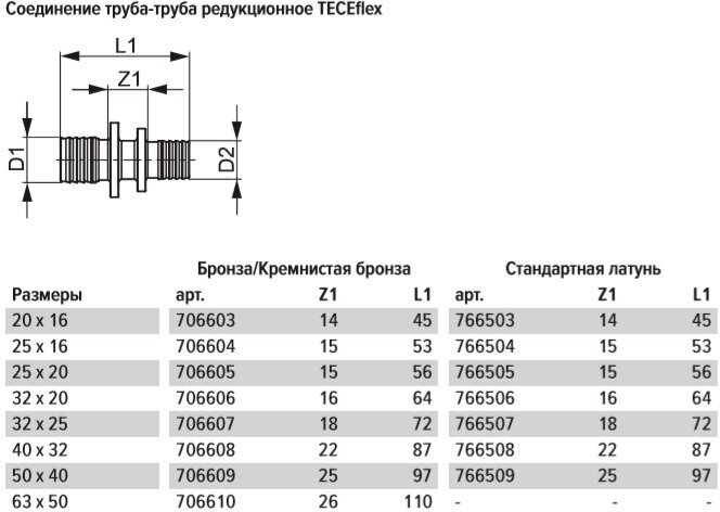 Tece pipe-pipe reducing 32x25 brass