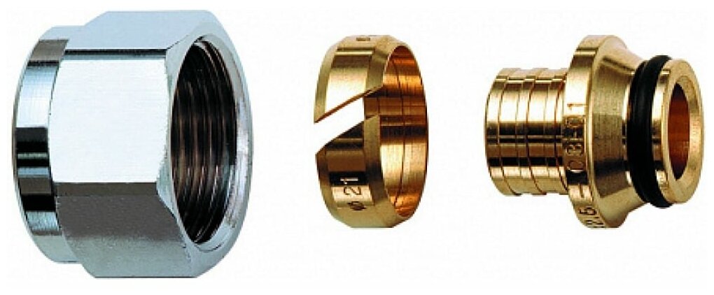 Type: euro cone with union nut, connection type: collet crimp, connection: internal, pipe diameter: 16 mm, pipe thickness: 2 mm, material: nickel-plated brass, detachable, with union nut, with seal, combined