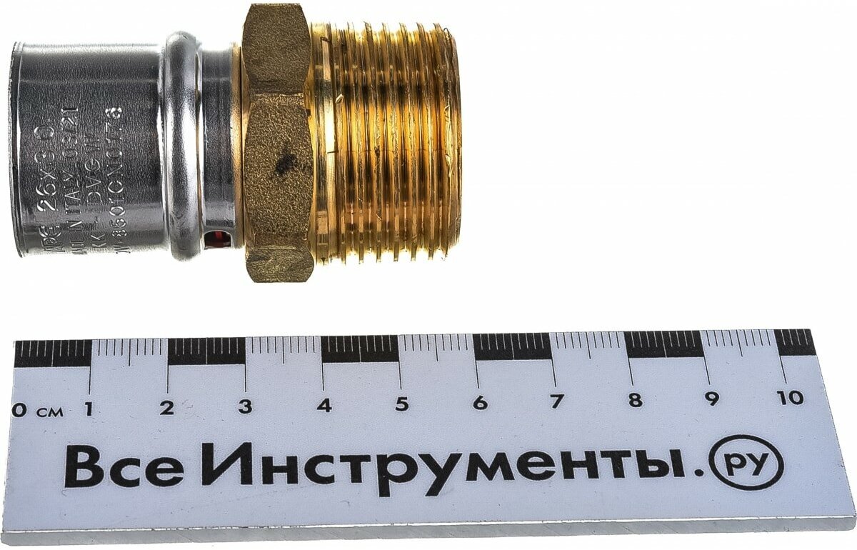 Type: adapter, type of connection: press-thread, connection: male / female, thread diameter: 1", pipe diameter: 26 mm, pipe thickness: 2 mm, material: brass, adapter