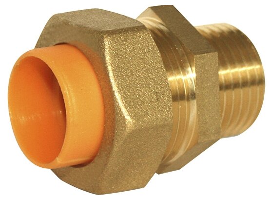 Type: coupling, connection type: crimp - thread, connection: male, press fitting profile: M, thread diameter: ¾", pipe diameter: 20 mm, material: brass, split, with union nut, with seal, combined