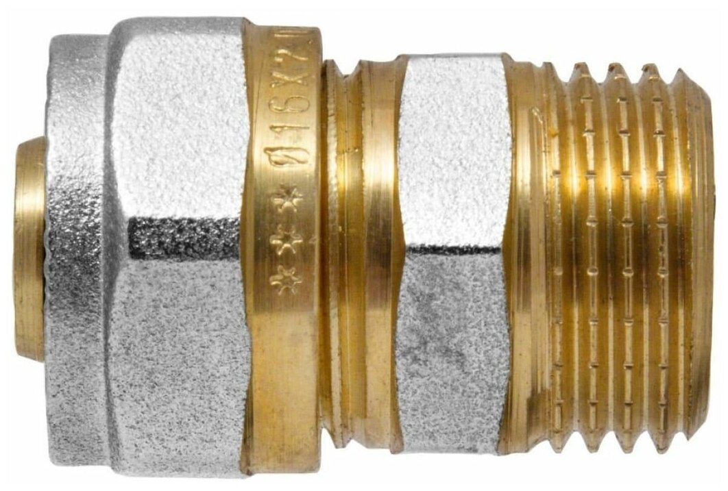 Type: adapter, type of connection: crimp - thread, connection: male, thread diameter: ½", material: nickel-plated brass, transition, combined