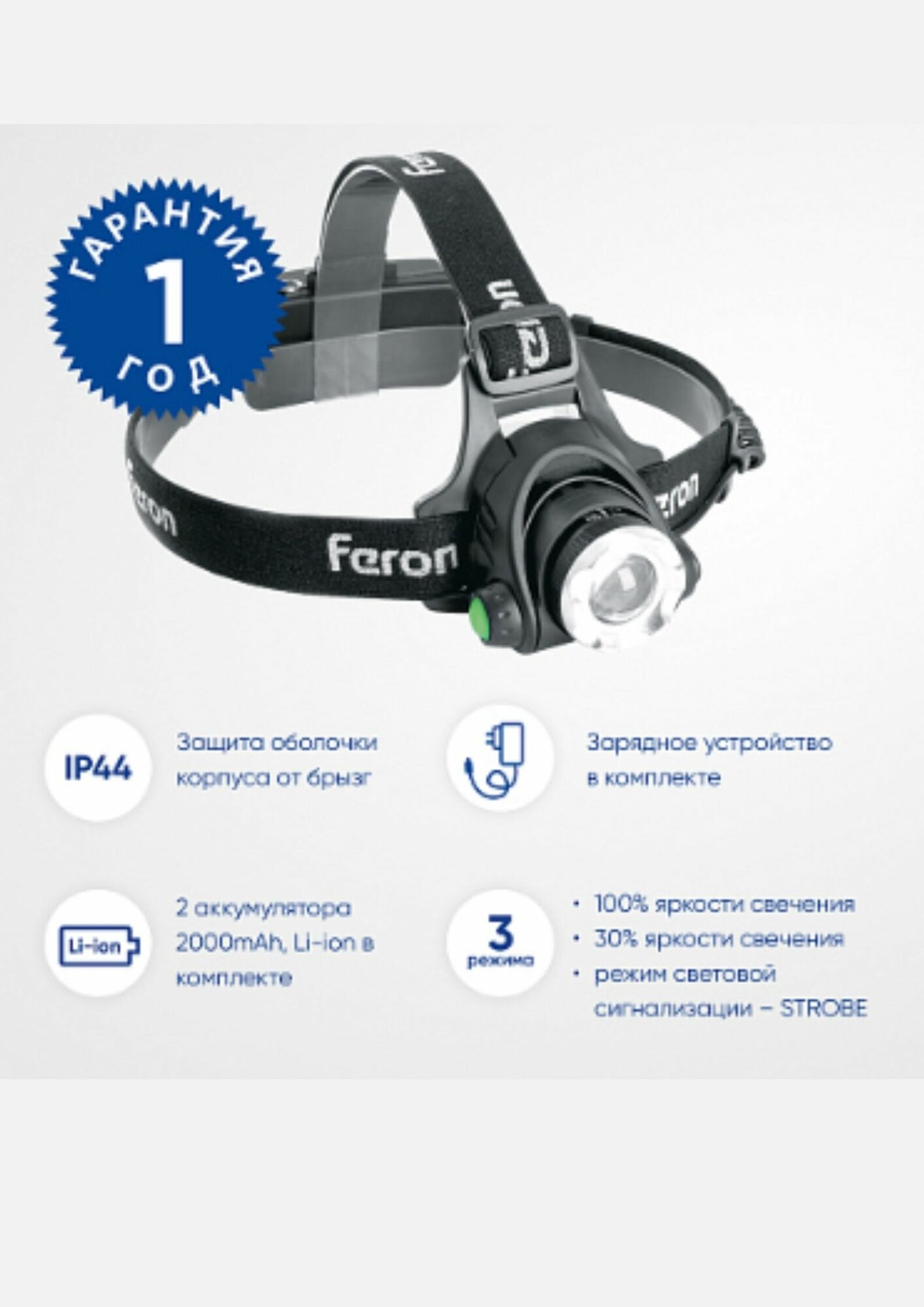 Battery type: Li-ion; battery type: ICR18650; battery charging time: 5 h; detailed equipment: Flashlight, batteries, batteries, charger; number of batteries: 1; number of operating modes: 3; consumption