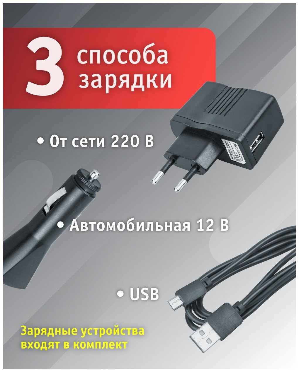Battery charging time: 5 h; number of batteries: 1; number of operating modes: 3; power consumption: from the network, from the vehicle's on-board network