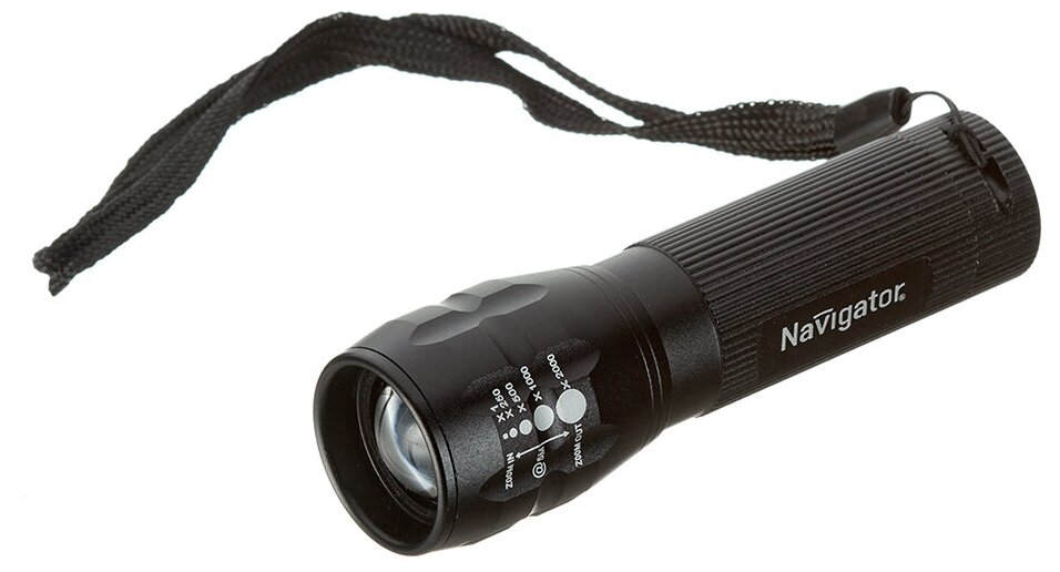 Focusing function, branded case and carrying strap included; battery type: AAA; detailed equipment: LED lantern LED NAVIGATOR 1х3W aluminum focus; number of batteries: 3; number of operating modes: 3