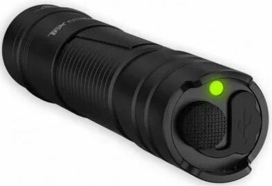 Armored lens, end switch, memory function, overheat protection, 2m drop tested; battery type: ICR18650; number of batteries: 1; number of operating modes: 4; power consumption: from USB