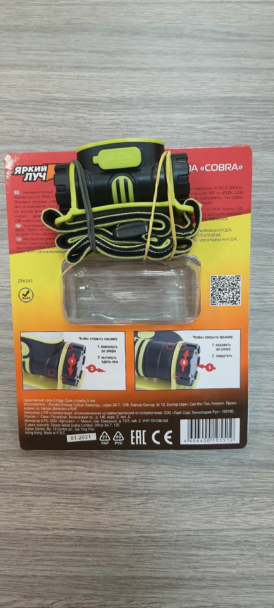 Type: headlamp, light source: LED, power type: battery, power consumption: USB, features: high beam, cool white light, eco mode, impact resistance, luminous flux: 190 lm, maximum