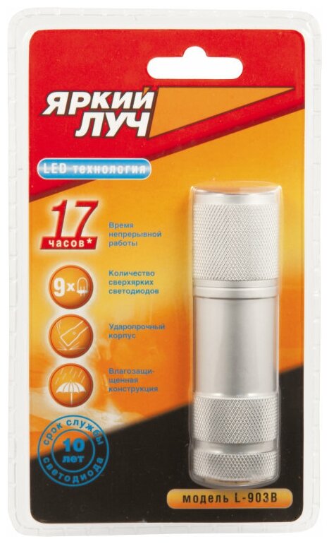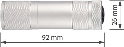 Type: hand torch, light source: LEDs, power type: batteries, features: shockproof housing, maximum operating time: 17 h, housing material: aluminum
