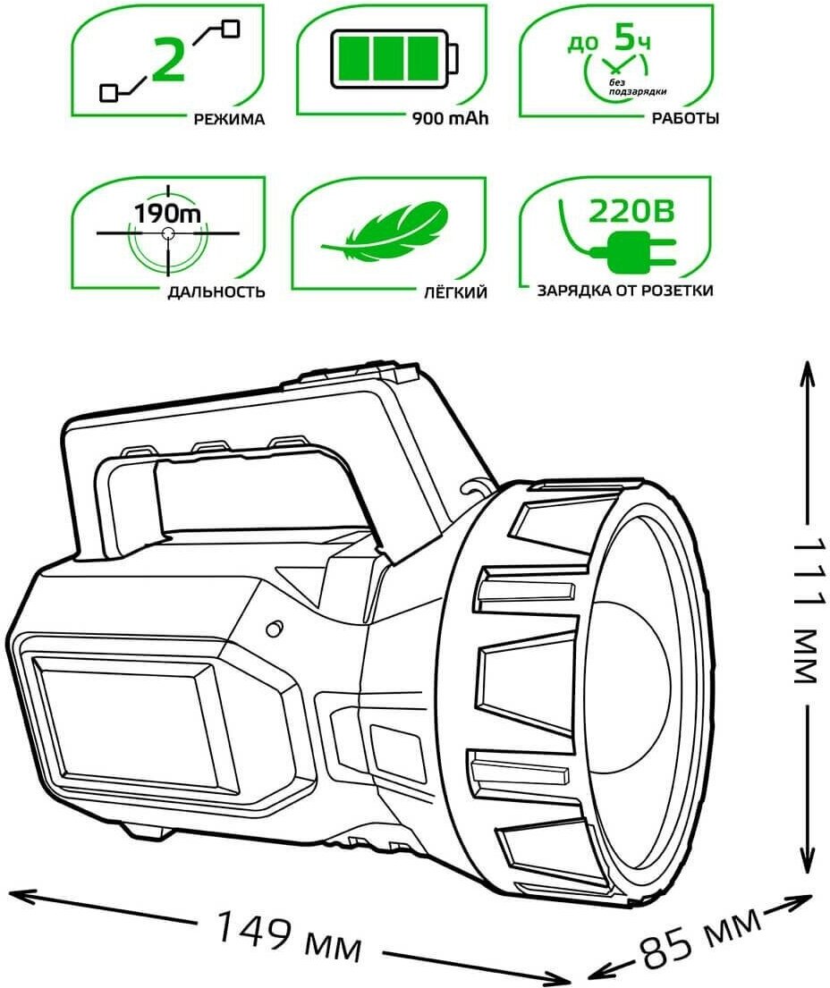Type: camping lantern, light source: LEDs, power type: built-in battery, power consumption: from the car's onboard network, from the mains, features: red light, economy mode, maximum operating time