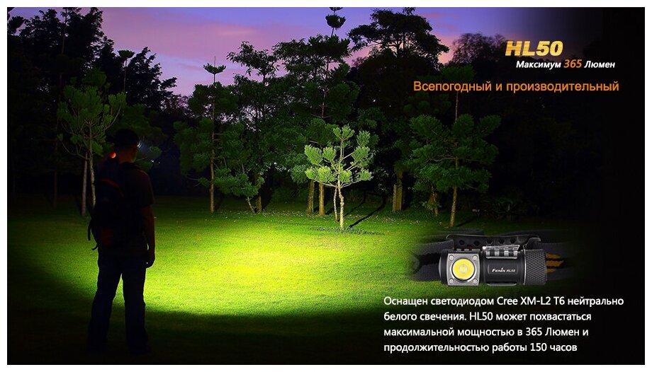 Type: headlamp, light source: LED, power type: battery, features: high beam, turbo mode, shockproof housing, economy mode, luminous flux: 365 lm, illumination range: 77 m, maximum time