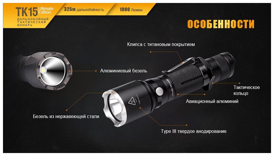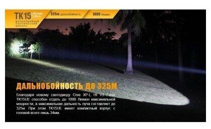 Type: Hand lamp, light source: LEDs, power type: battery, features: high beam, strobe, shockproof housing, economy mode, luminous flux: 1000 lm, lighting range: 325 m, maximum time