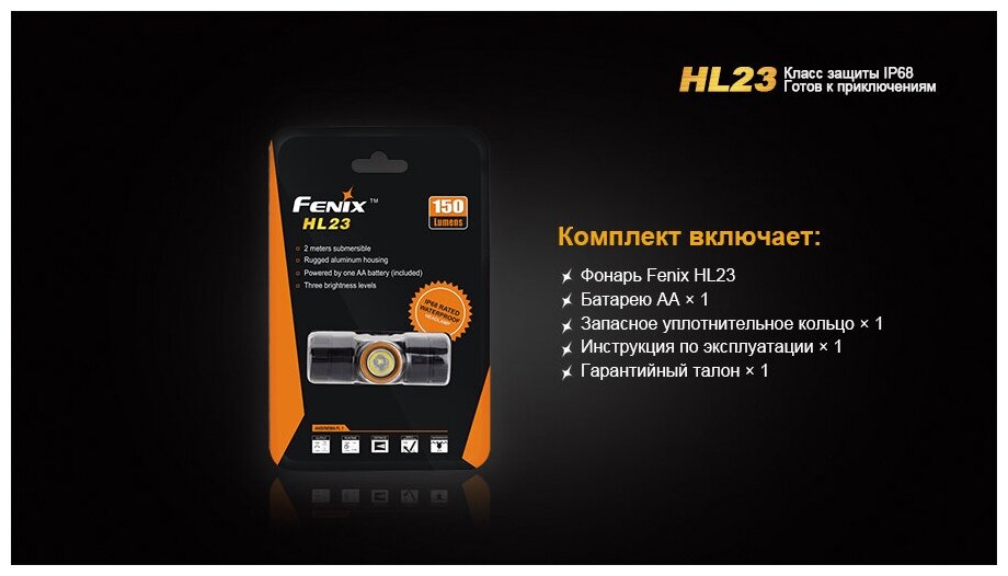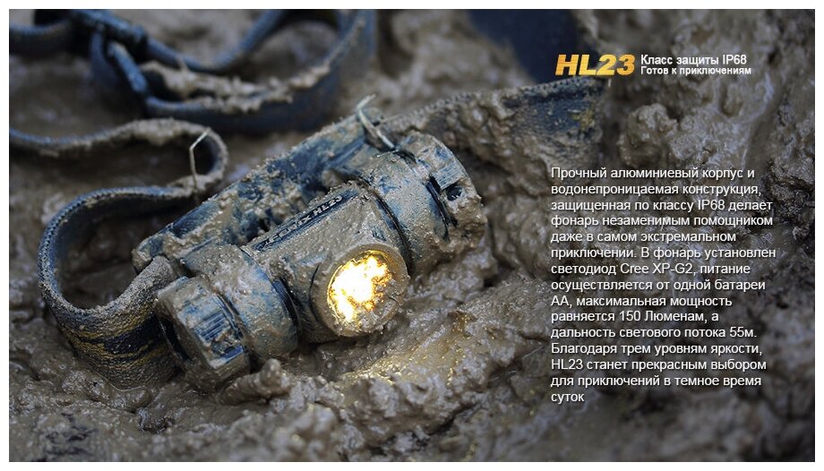 Battery type: AA; detailed equipment: - hand strap;<br/> - sealing ring.; number of batteries: 1; number of operating modes: 3