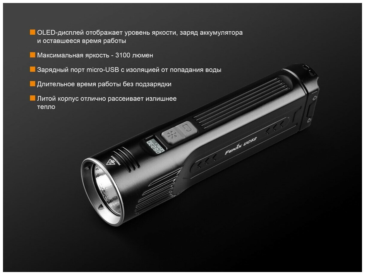 Type: hand torch, light source: LEDs, power type: built-in battery, power consumption: from USB, features: high beam, turbo mode, signal mode, strobe, shockproof housing, economy mode