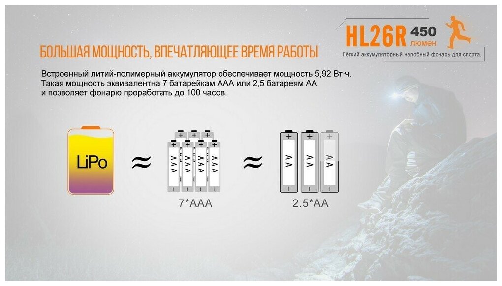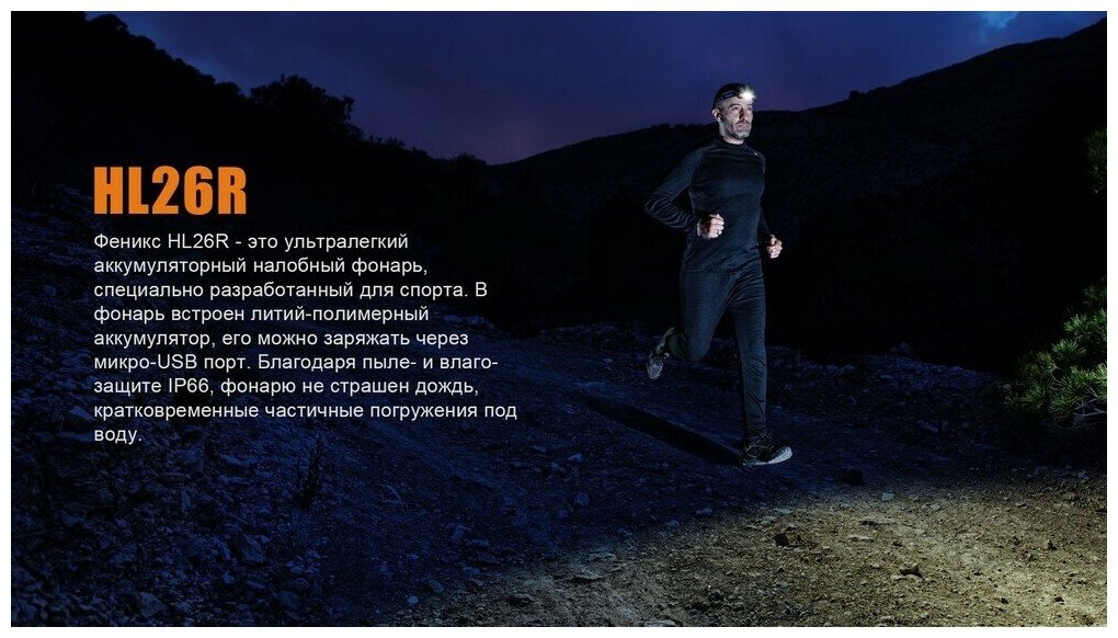 Type: headlamp, light source: LED, power type: built-in battery, power consumption: from USB, features: high beam, turbo mode, signal mode, shockproof housing, economy mode, light