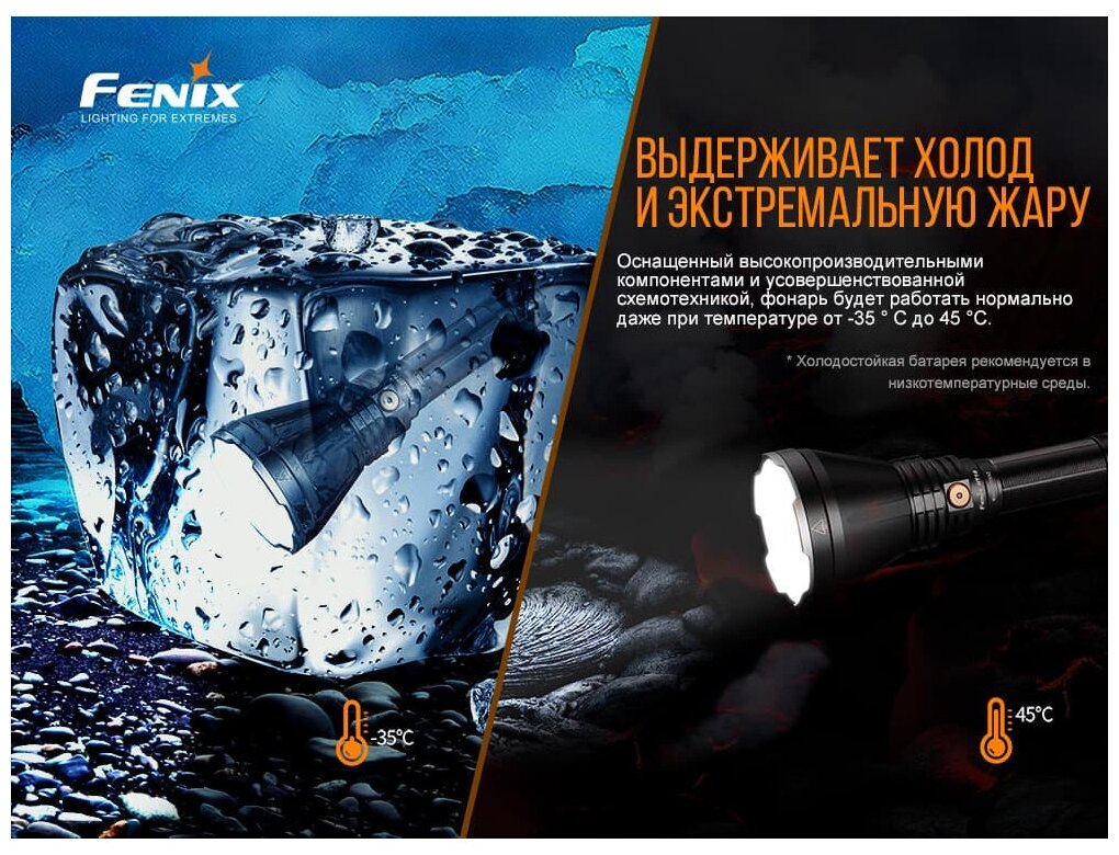 Waterproof, shockproof housing, cold white light, Operation at sub-zero temperatures -10, Shock resistance, Digital brightness stabilization
