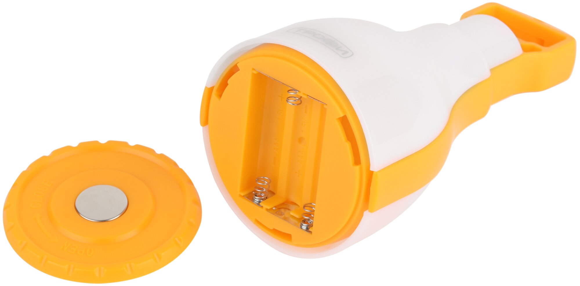 48 LEDs, hanging bracket, magnets for attaching to metal surfaces; battery type: AAA; number of batteries: 3; number of operating modes: 2
