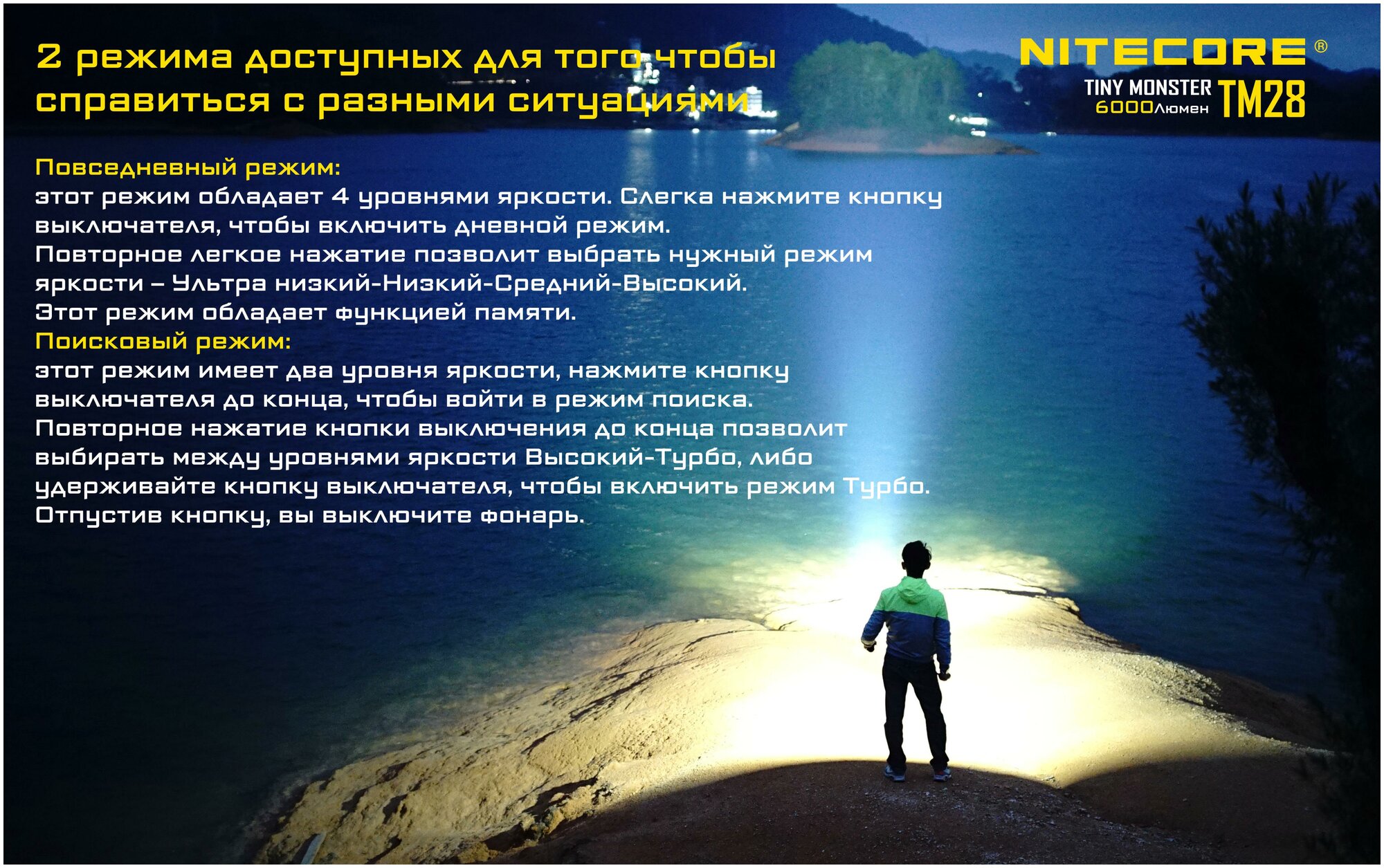 The ability to mount on a tripod is sold separately; battery type: ICR18650; detailed equipment: case; network adapter; holster; FLASHLIGHT; 4 batteries IMR18650 3.7v 3100mA; battery capacity: 12400 mAh; number of batteries: 4; to