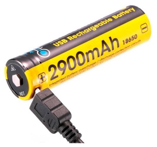 Size: 18650 168A, technology: Li-Ion, operating voltage: 3.60 V, capacity: 2900 mAh, features: built-in USB charging, charge indicator, with protection