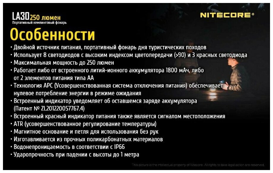 Type: camping lantern, light source: LEDs, power type: built-in battery, power consumption: from the car's onboard network, from the mains, features: red light, economy mode, maximum operating time