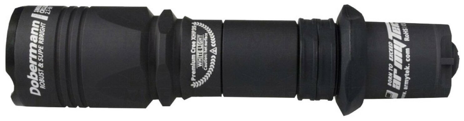 Power supply: 1x18650 Li-Ion / 2x18350 Li-Ion / 2xR123 Li-Ion / 2xCR123A; features: full brightness stabilization, water resistance immersion up to 25 m, shockproof drop from a height of up to 25 m, operation at sub-zero temperatures, indication of low