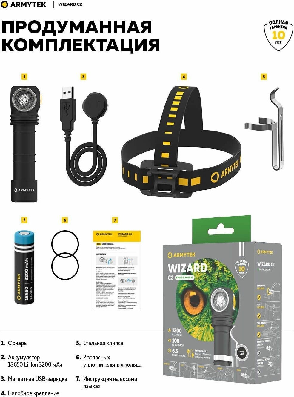 Type: headlamp, light source: LEDs, power supply type: batteries, power consumption: USB, features: moisture protection, Emergency beacon, Short circuit protection, Operation at sub-zero temperatures -10, Sta