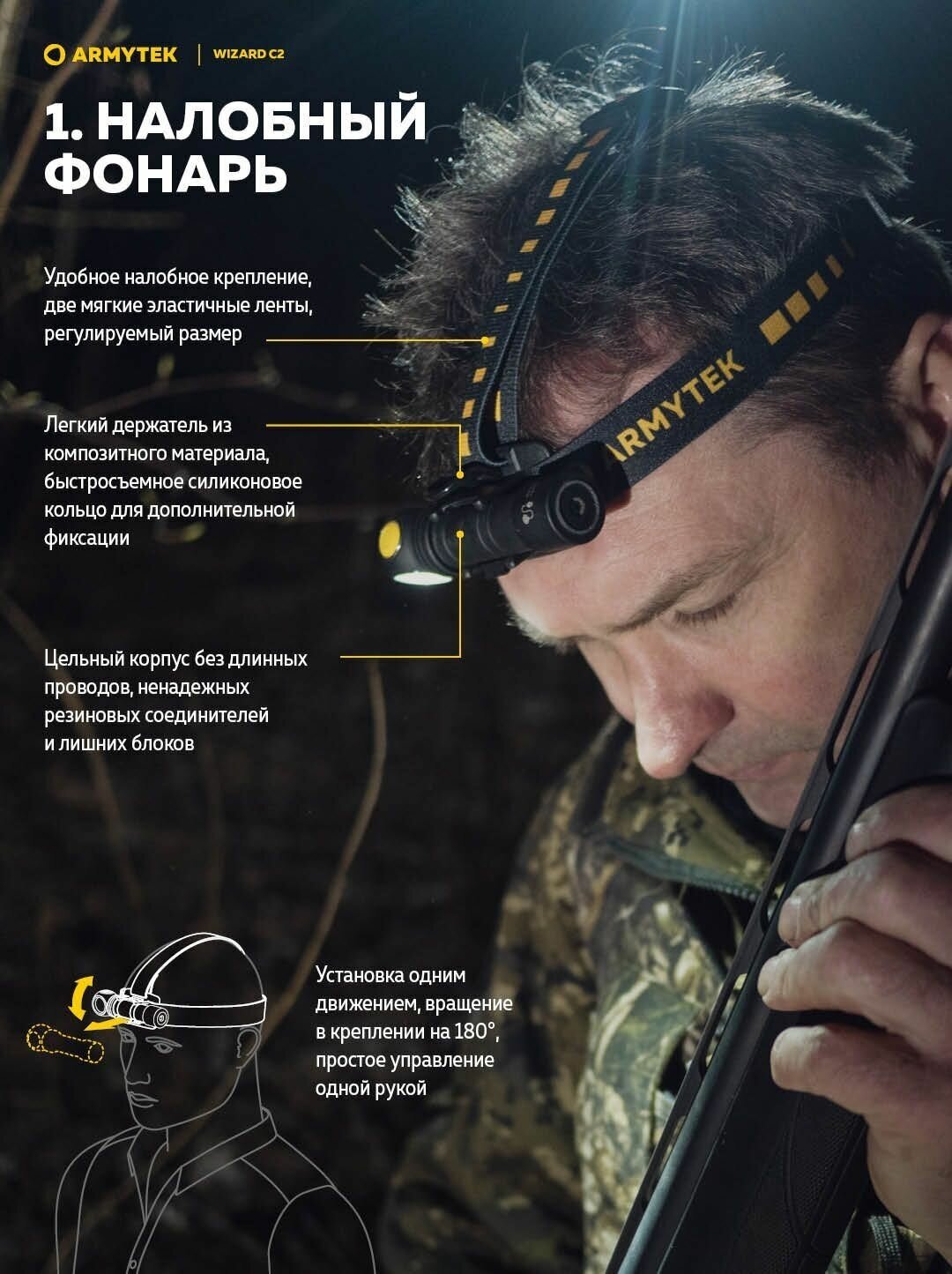Headlamp Armytek Wizard C2 WR Magnet USB Warm and red light