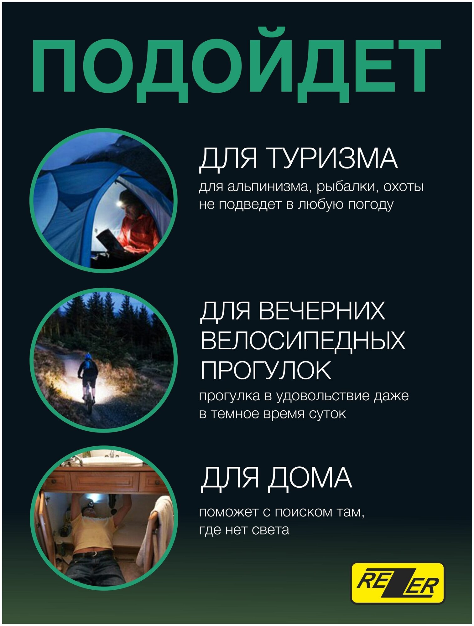 Type: headlamp, light source: LEDs, power type: built-in battery, power consumption: from the mains, features: moisture protection, high beam, stroboscope, shockproof housing, economy mode, light source