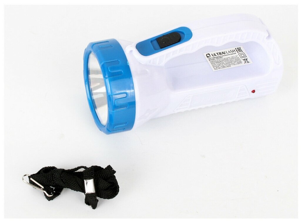 Built-in electric plug; battery charging time: 4 h; detailed equipment: flashlight, shoulder strap, operational document, packaging; number of operating modes: 2; power consumption: mains