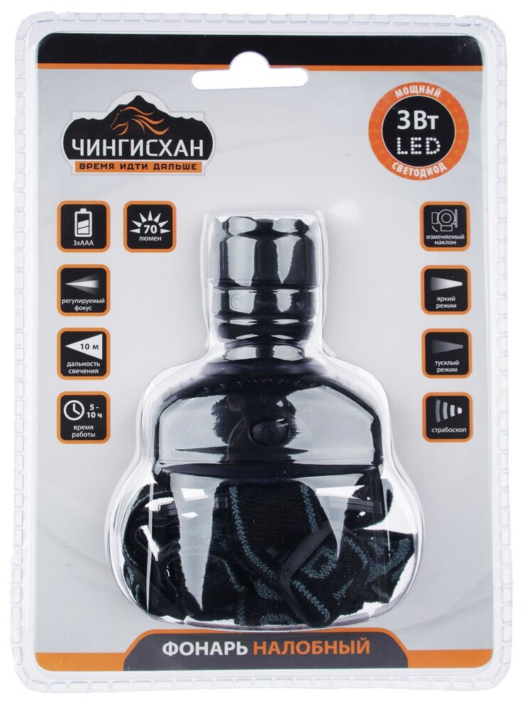 Type: headlamp, light source: LEDs, power type: battery, features: high beam, rubber housing, stroboscope, economy mode, luminous flux: 70 lm, lighting range: 10 m, maximum time