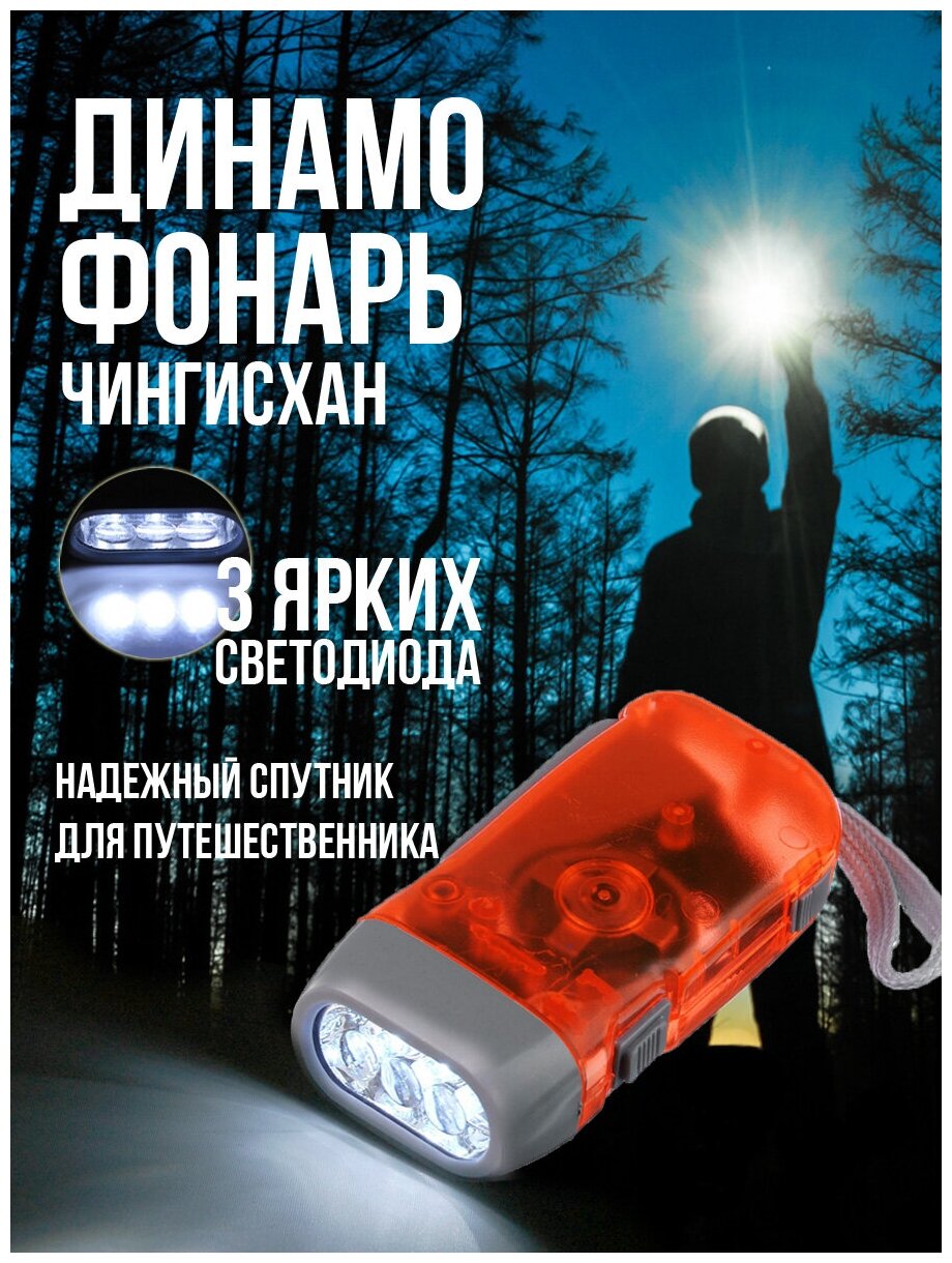 Type: hand torch, light source: LEDs, power type: built-in battery, power consumption: dynamo charging, features: daylight white light, luminous flux: 20 lm, lighting range: 3 m, body material: p