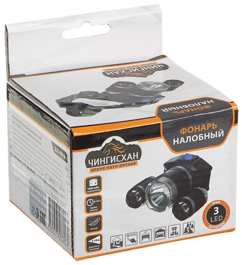 Type: headlamp, light source: LEDs, power type: built-in battery, power consumption: USB, lighting range: 10 m, maximum operating time: 10 h, housing material: plastic