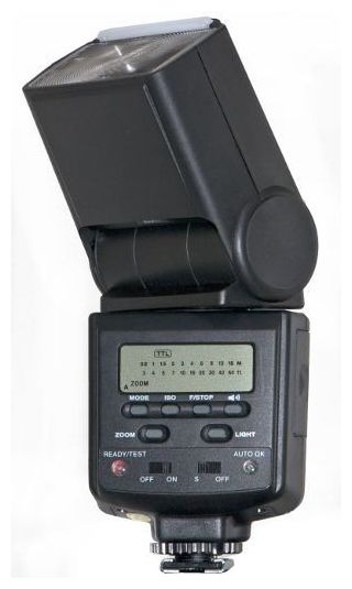 5 power levels: 1/1, 1/2, 1/4, 1/8, 1/16, flash-ready indication in viewfinder, built-in reflector, color temperature - daylight