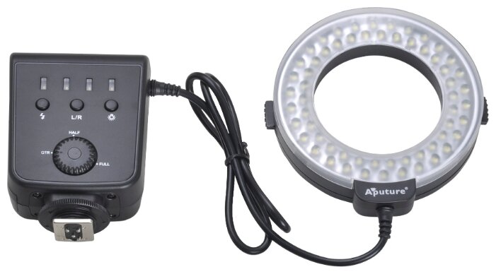 Two ways to install on the lens and on the control unit, brightness adjustment, effective distance to the illuminated object 5-150 cm, color temperature 5500K, brightness adjustment: -3EV to +3EV