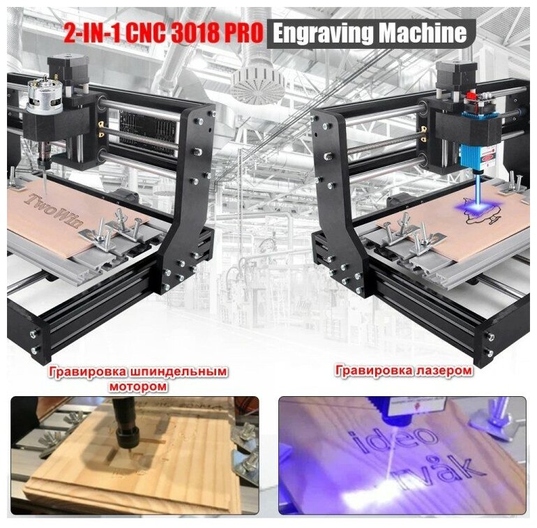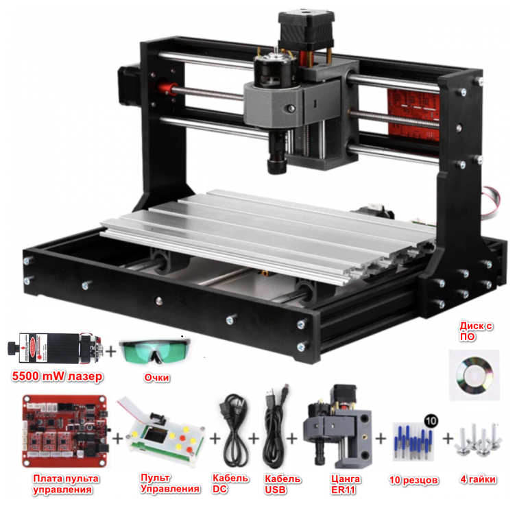 Laser and milling engraving machine CNC3018 PRO, 5500 mW / 10000 rpm