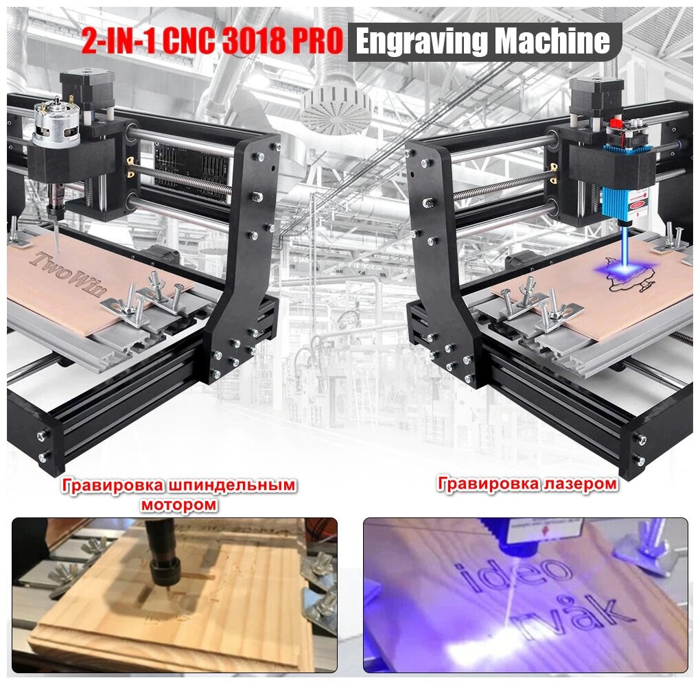 Machine type: horizontal milling, bed type: stationary, processing material: wood, plastic, steel, voltage: 220 V, purpose: engraving, features: CNC, depth: 355 mm, weight: 6 kg