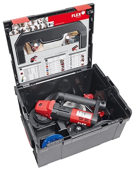 Sanding head PKD-Jet, SoftVib handle, dust extraction hood, cutter attachment Ø 80 mm, sanding disc Ø 115, set of Korund sanding discs Ø 115, plastic case, socket wrench, Allen key