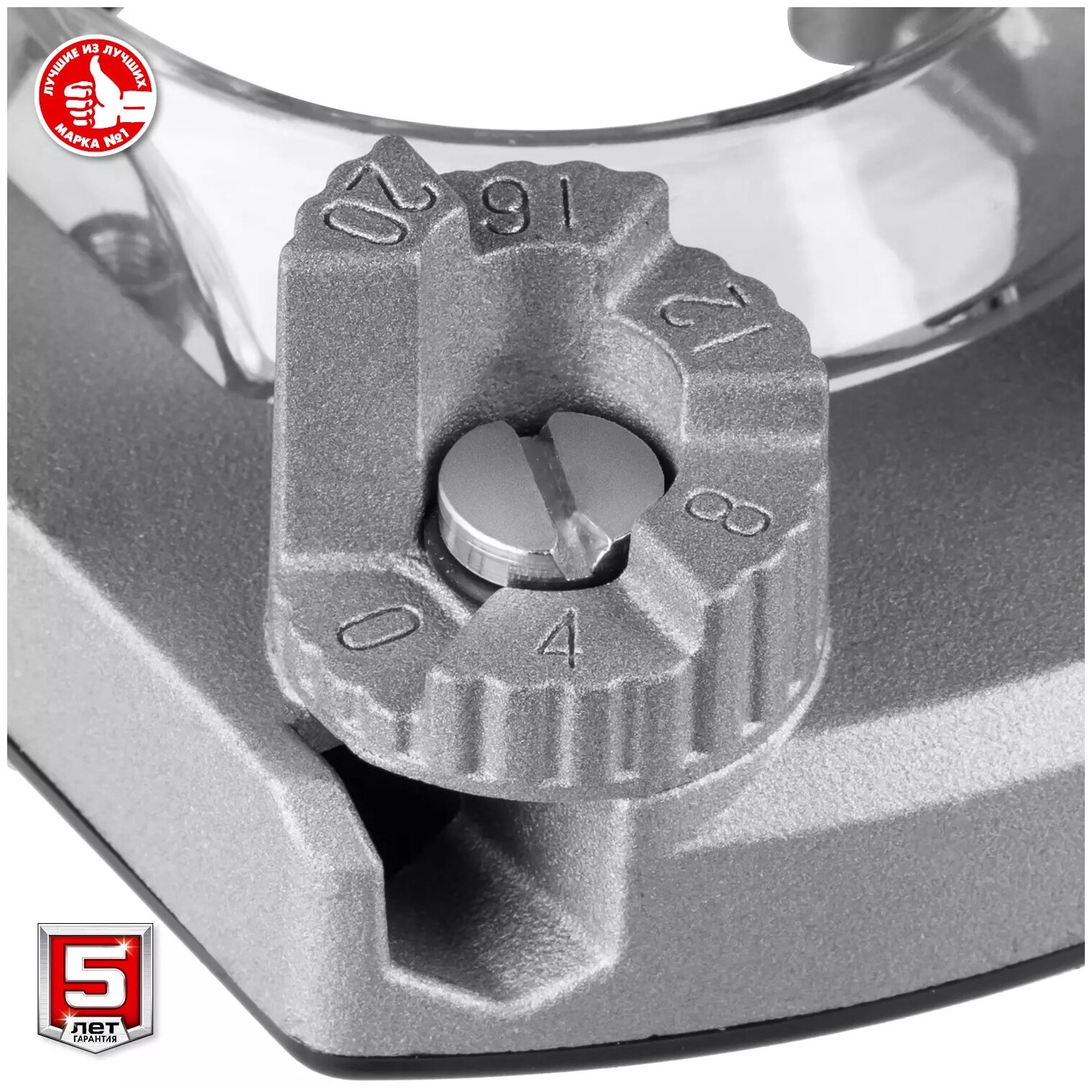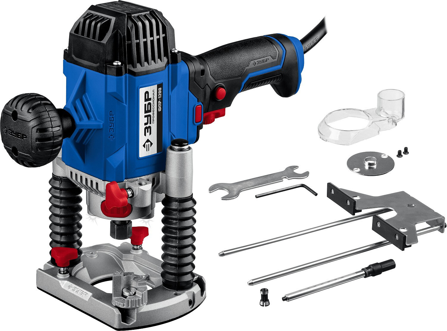 Equipment: Milling cutter, collet 6 and 8 mm, horizontal stop, dust cover, additional handle, wrenches, imbus, instruction manual