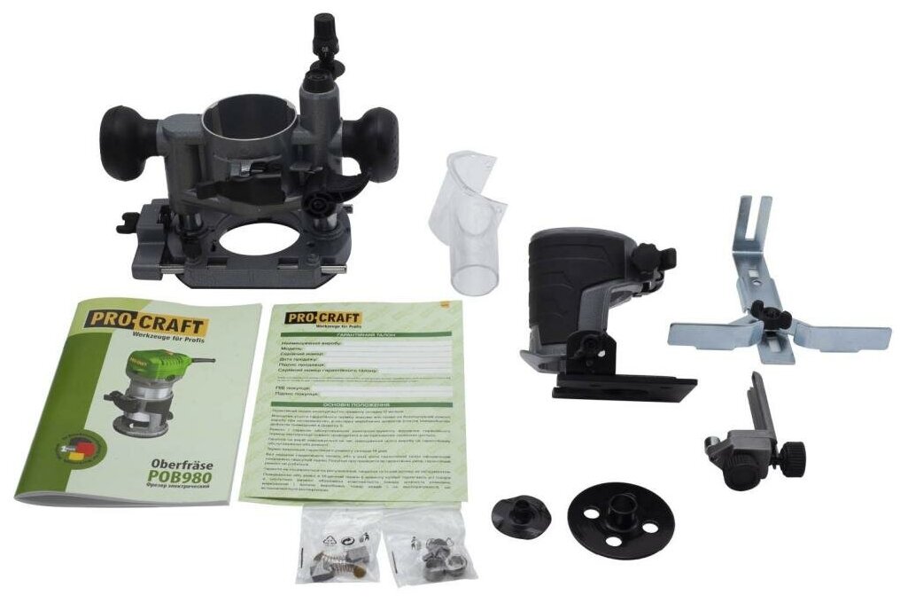 Equipment: Edge base Tilt base Carrying bag Dip base Rail Vacuum cleaner adapter Instruction manual Stop fence Brushes