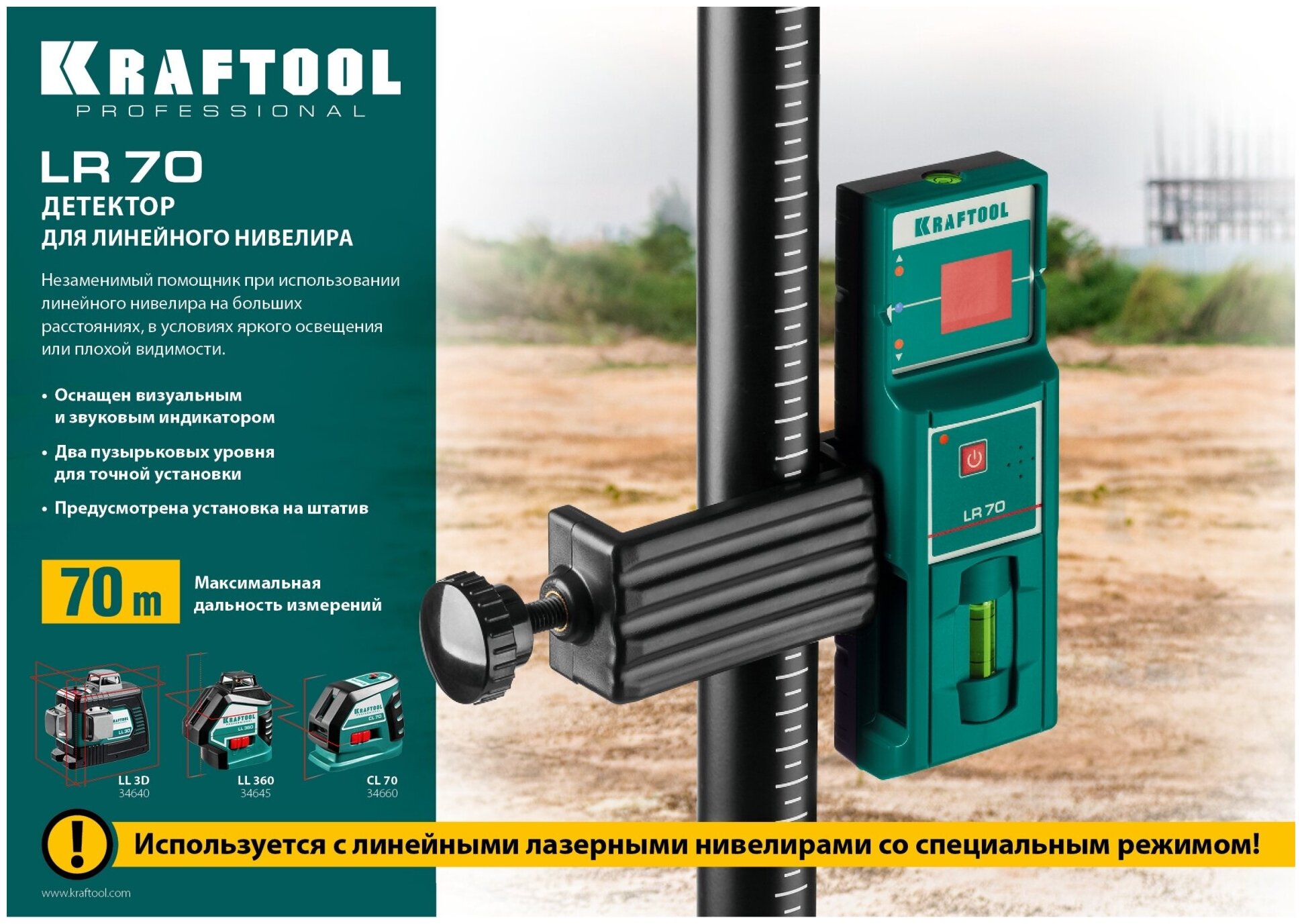 Linear red laser beam receiver KRAFTOOL LR 70 detector, art. 34607