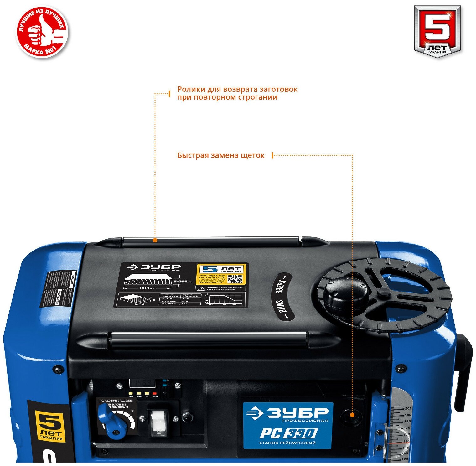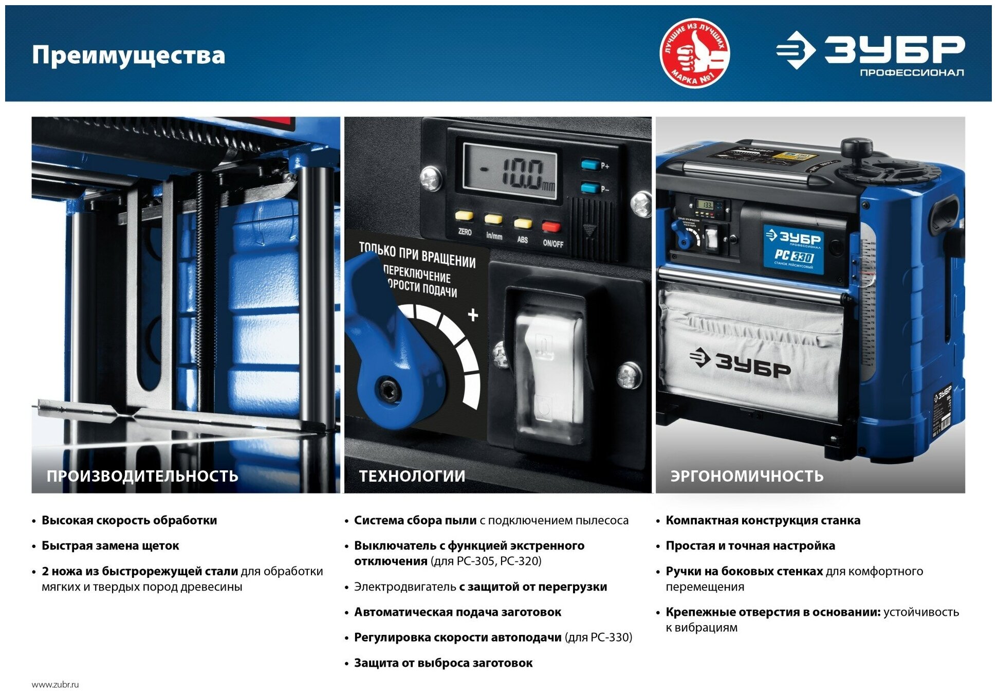 Table extension dimensions: 355x195 mm; 2 automatic feed speeds: 4 and 6 m/min; exhaust outlet diameter: 65/100 mm