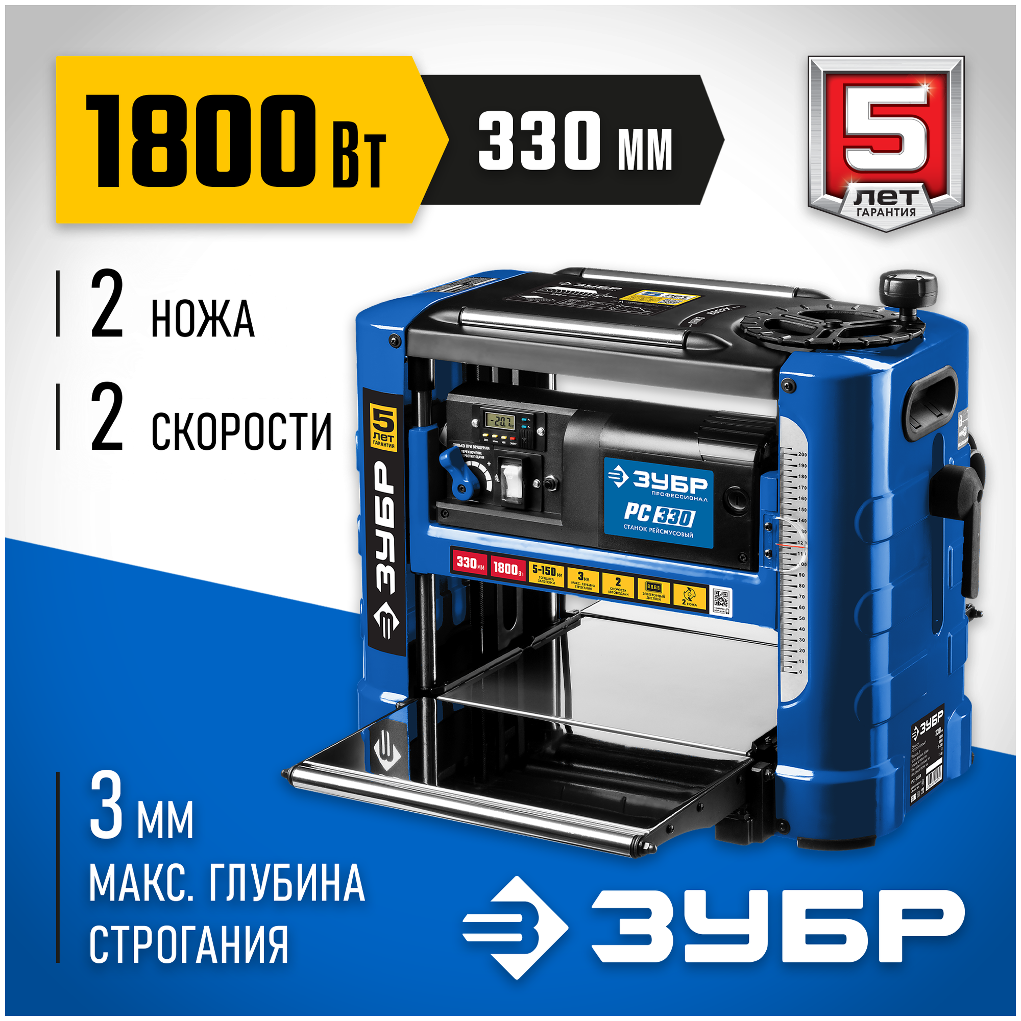Type: thicknesser, thicknesser table length: 330 mm, thicknesser table width: 285 mm, maximum thickness thickness: 3 mm, workpiece feed speed: 6 m/min, power consumption: 1.80 kW, transmission: chain, max.