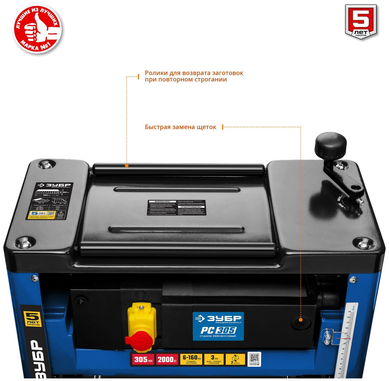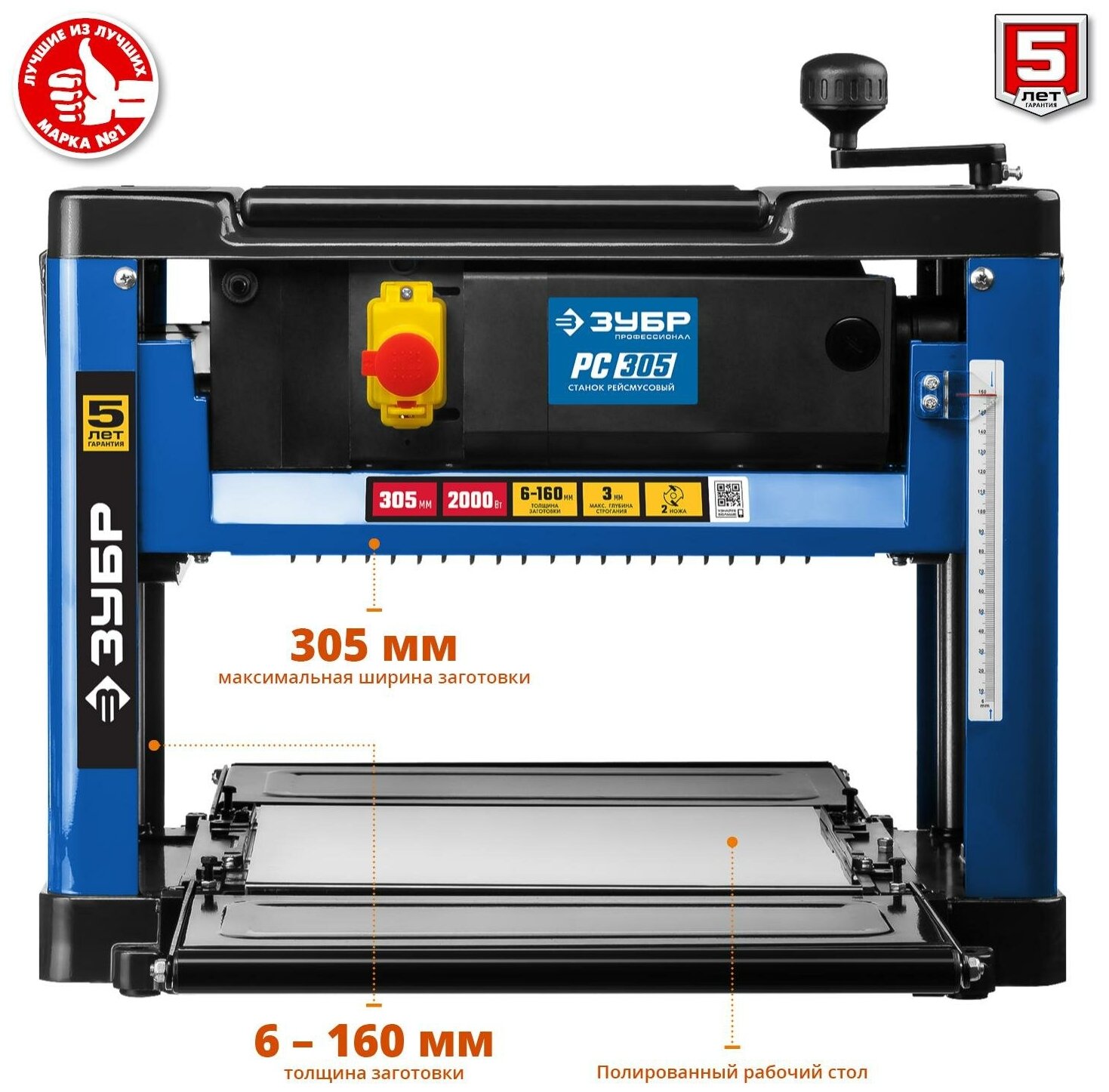Type: thicknesser, thicknesser table length: 307 mm, thicknesser table width: 290 mm, maximum thickness thickness: 3 mm, workpiece feed speed: 6 m/min, power consumption: 2 kW, number of knives: 2, bed type: